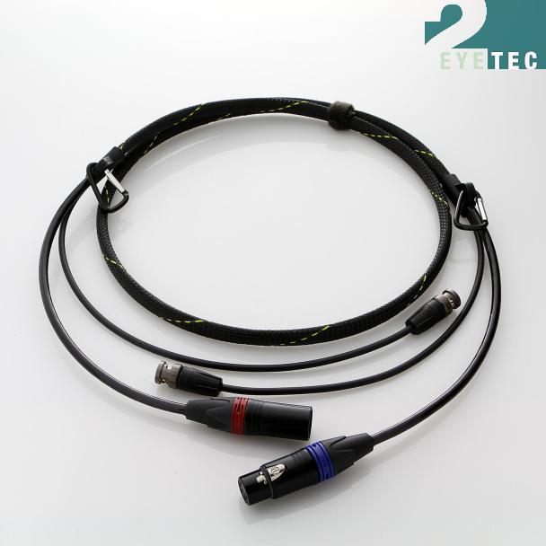 Ein Kabel zur Spannungsversorgung und ein flexibles, 12G-fähiges BNC Kabel sind in einem Geflechtschlauch zusammen gefasst. Die Enden des Geflechtschlauchs sind mit dem Kabel vergossen, so dass eine widerstandsfähige Verbindung entsteht. Ein Herausrutschen der Geflechts, wie es bei der Verarbeitung mit einem Schrumpfschlauch passieren kann, ist so gut wie unmöglich. Außerdem ist an beiden Enden jeweils eine Öse zur Zugentlastung eingearbeitet.