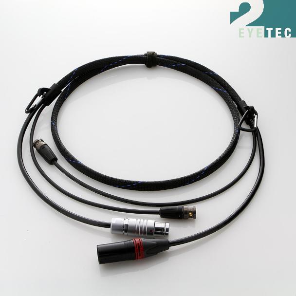 Ein Kabel zur Spannungsversorgung und ein flexibles, 12G-fähiges BNC Kabel sind in einem Geflechtschlauch zusammen gefasst. Die Enden des Geflechtschlauchs sind mit dem Kabel vergossen, so dass eine widerstandsfähige Verbindung entsteht. Ein Herausrutschen der Geflechts, wie es bei der Verarbeitung mit einem Schrumpfschlauch passieren kann, ist so gut wie unmöglich. Außerdem ist an beiden Enden jeweils eine Öse zur Zugentlastung eingearbeitet.