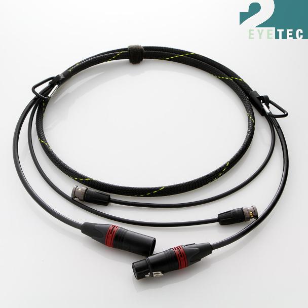 Ein Kabel zur Spannungsversorgung und ein flexibles, 12G-fähiges BNC Kabel sind in einem Geflechtschlauch zusammen gefasst. Die Enden des Geflechtschlauchs sind mit dem Kabel vergossen, so dass eine widerstandsfähige Verbindung entsteht. Ein Herausrutschen der Geflechts, wie es bei der Verarbeitung mit einem Schrumpfschlauch passieren kann, ist so gut wie unmöglich. Außerdem ist an beiden Enden jeweils eine Öse zur Zugentlastung eingearbeitet.