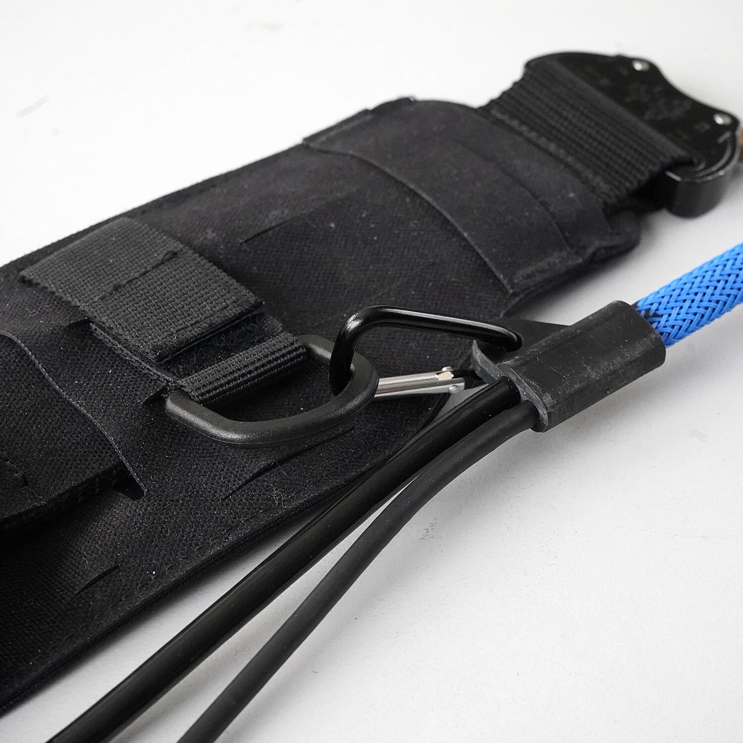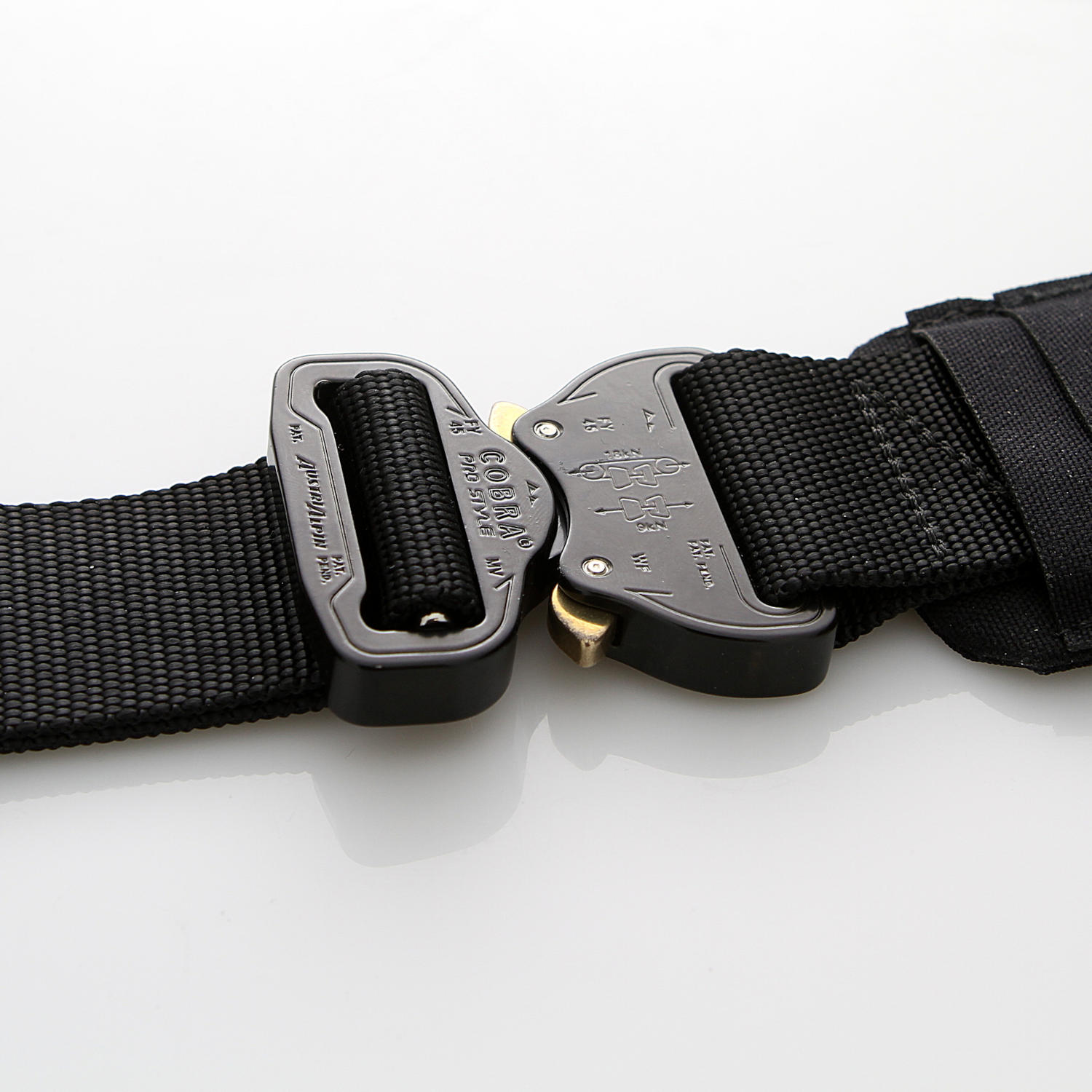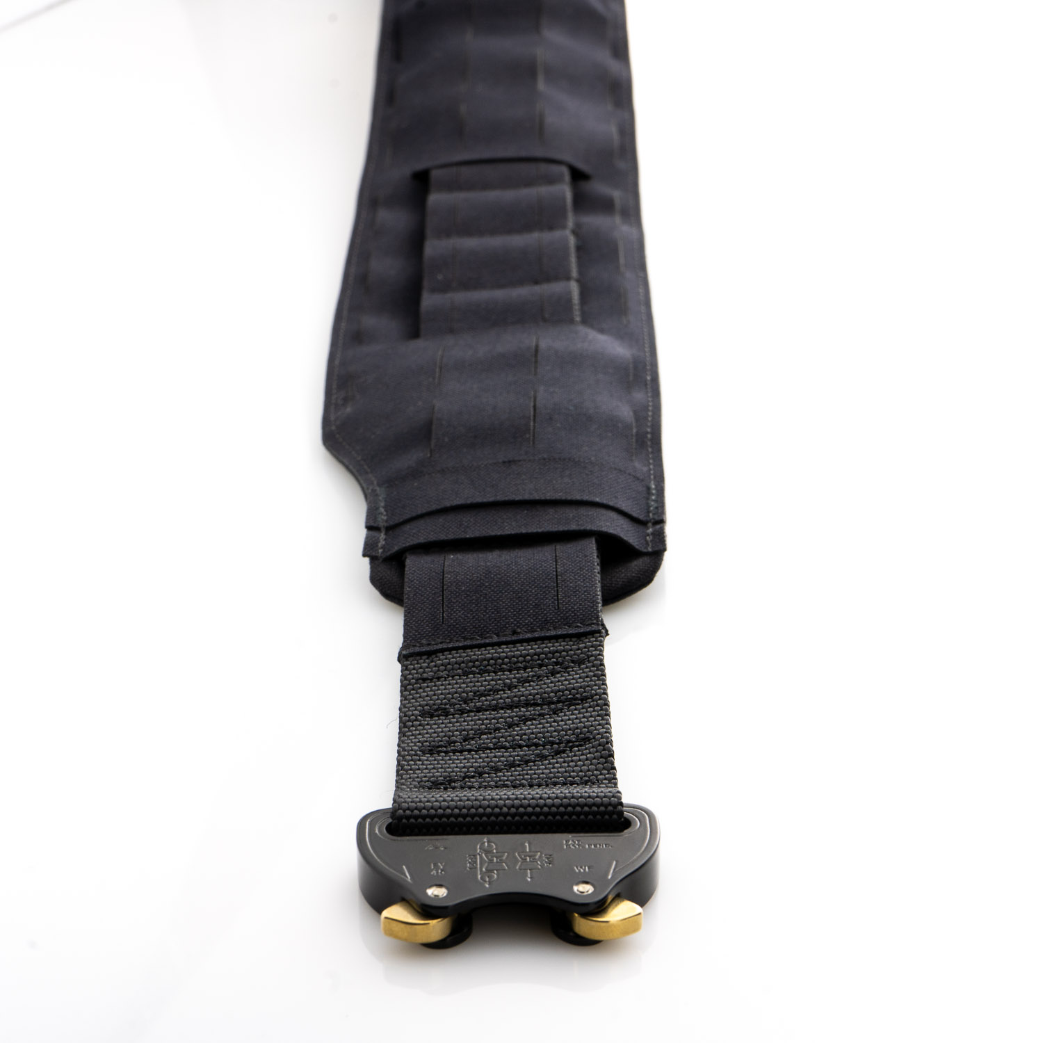 The belt consists of two parts: The actual belt and a MOLLE carrying system. The belt is sewn to our specifications in Germany from extremely durable nylon webbing and fitted with a COBRA® Quick Release buckle from AustriAlpin. The buckle can only be opened by pressing both clips simultaneously. Unintentional release under tension is practically impossible.Â