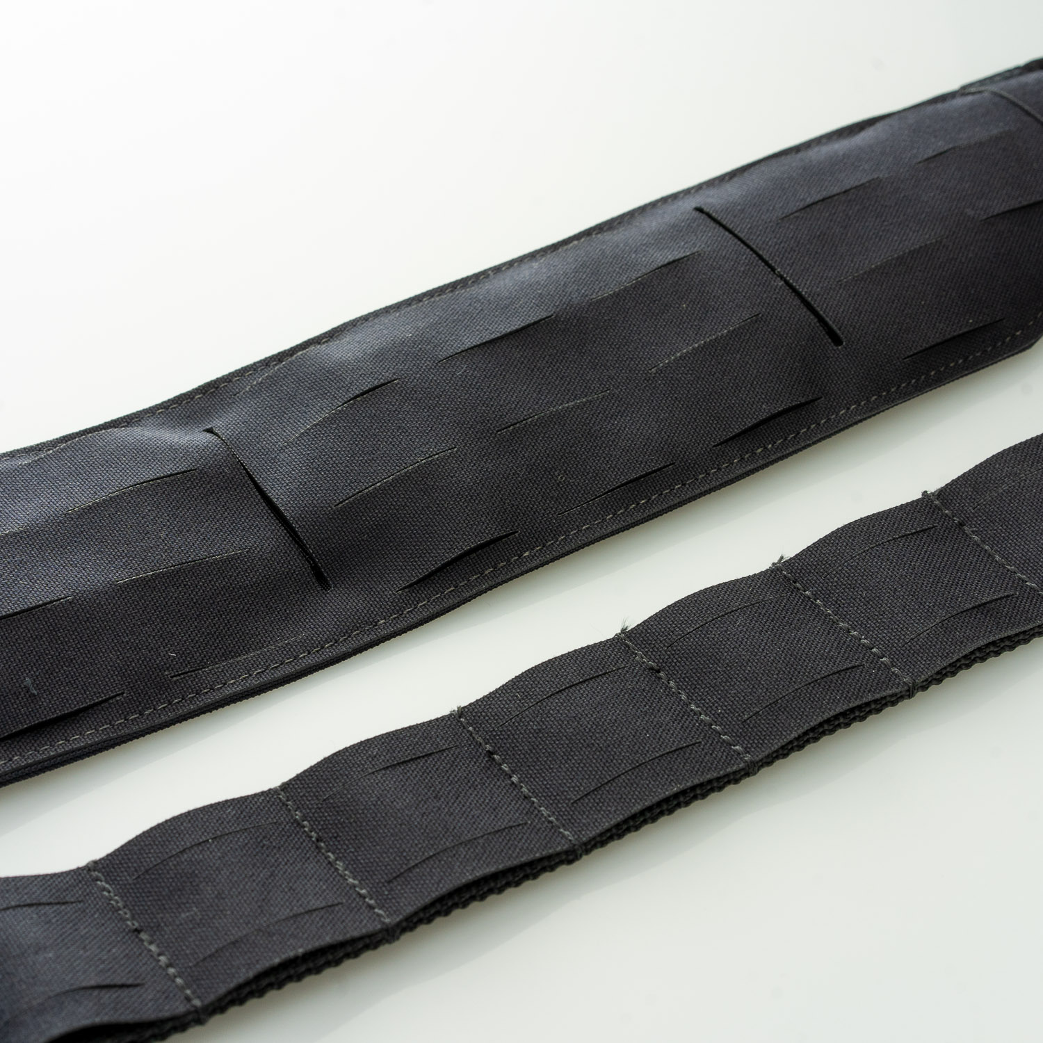 The MOLLE carrying system is a addon for the belt to attach equipment and accessories. If required, for example when using very heavy batteries, additional padding can easily be added.