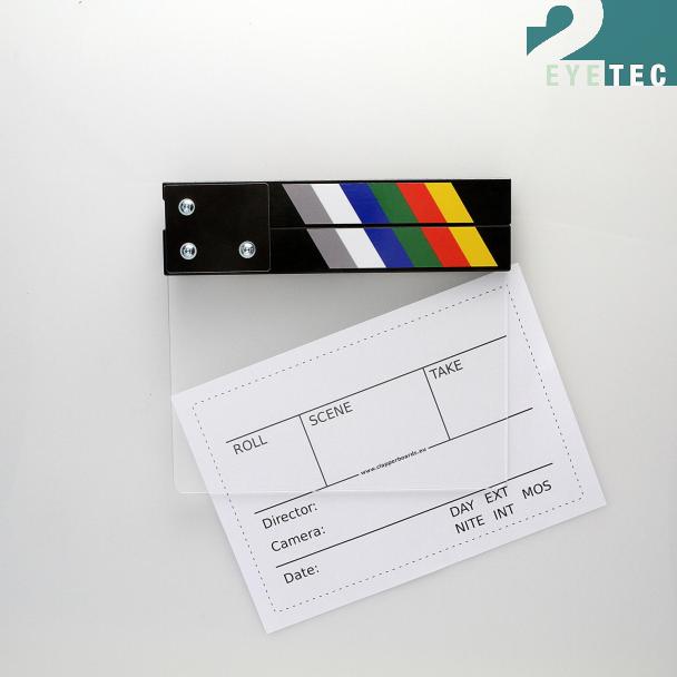 With the Camera Slate HalfSize color Clear it is very easy to realise a custom design, to integrate production logos or printed names of the director or DP by putting a printed sheet between the two plates.